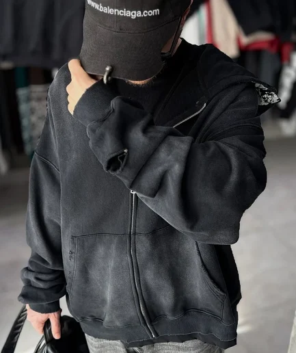 Men’s Designer Fashion Hoodie Heavyweight Printed Retro Unisex Acid Washed Distressed Old Zipper Hoodie