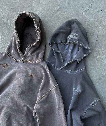 • Men Vintage Hoodie Acid Wash Oversized Distressed Heavyweight 500 Gsm French Terry Hoodies