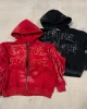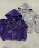 Fashion Streetwear Sun Faded Heavy Cotton Vintage Acid Washed Zip up Oversized Boxy Fit Rhinestone Hoodie