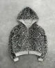 Heavyweight Thick Leopard Fleece Double Layer Zip up Reversible Hoodie Winter Men Women Warm Fur Hoodie