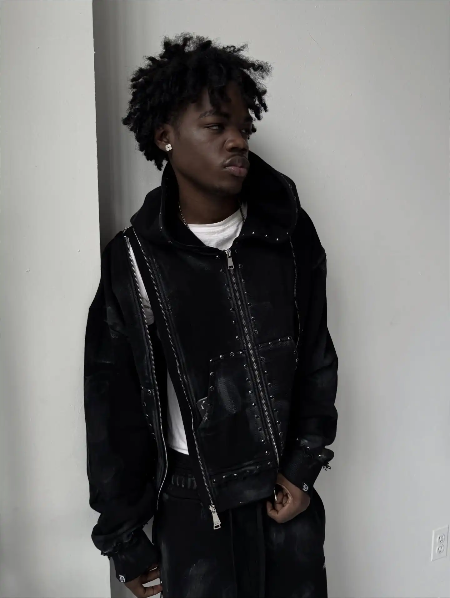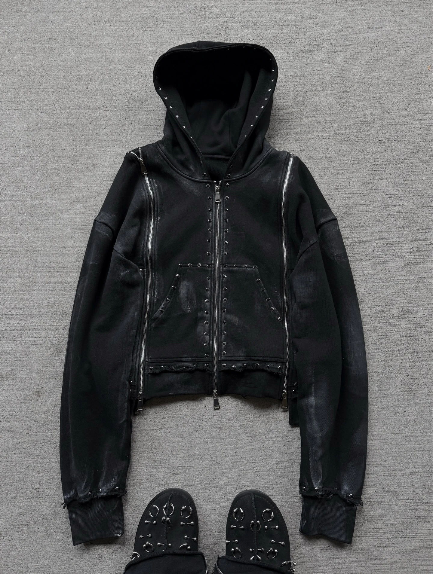 Heavyweight, Blank, Oversized Men’s Rivet, Rhinestone, Sun Dried Zipper, French Looped Street Hoodie Based on Sample